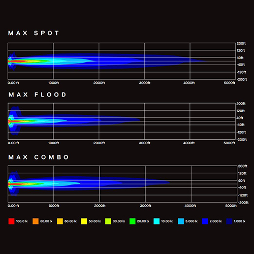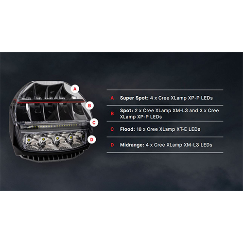 Een uniek vieroptisch ontwerp (Super Spot, Spot, Flood en Midrange) biedt een vrijwel onbeperkte keuze aan lichtbundels voor elke wegconditie.