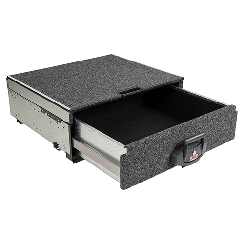 Outback Solutions Modular Roller Drawers hebben unieke en praktische kenmerken opgenomen in hun ontwerp om een hoge kwaliteit, maximale functionaliteit en gebruiksgemak te garanderen. De RDRF790 ladeblok heeft een uitrolbare lade en een rollend bovenblad, waardoor er veel opbergruimte is en een koelkast met vriesvak van links naar rechts over het rollende bovenblad kan worden georiënteerd en naar achteren kan worden gerold voor eenvoudigere toegang.