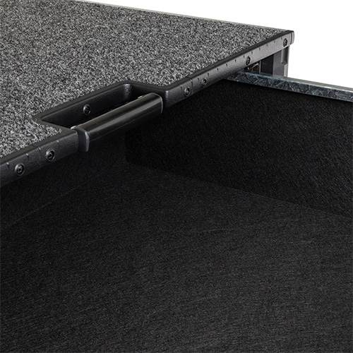 De buitenoppervlakken zijn afgewerkt met slijtvast commercieel tapijt en de binnen oppervlakken zijn afgewerkt met tapijt voor autobekleding. Beide materialen zijn slijtvast en verbergen vuil in zware offroad-omstandigheden.