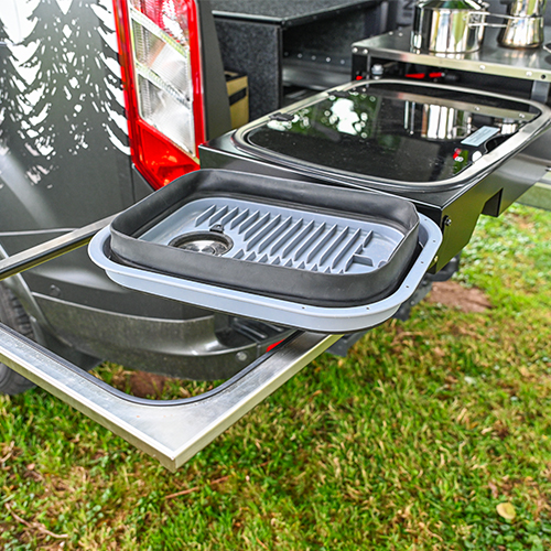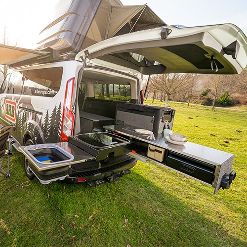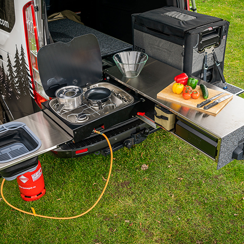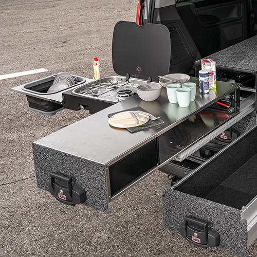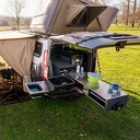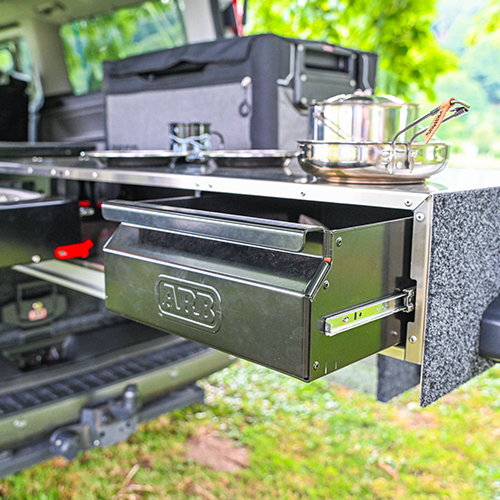 De ARB slide keuken is ontworpen om te integreren met ARB ladesystemen. Het roestvrij stale hoofdoppervlak heeft een maximaal gewicht van 30 kg/*25 kg gelijkmatig verdeeld over de grote keuken. Aan veiligheid is gedacht door een vlamdover technologie en deksel dicht gasafsluiting te installeren. Snelkoppeling, EU goedgekeurde slang, 2 m met EU goedgekeurde regelaar type EN61