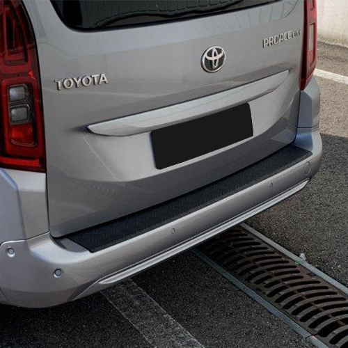De aluminium bumperplaat biedt bescherming voor de achterbumper Toyota Proace City. Een achterbumper kan snel beschadigd raken als je vaak via de laadklep of de achterdeuren in de bestelwagen moet zijn, of vaak moet laden en lossen. Door een bumperbeschermer te monteren voorkom je deze schade en zorg je voor extra grip. De grip van onze aluminium bumperbeschermers voorkomt uitglijden bij het in- en uitstappen van de gesloten bestelwagen.