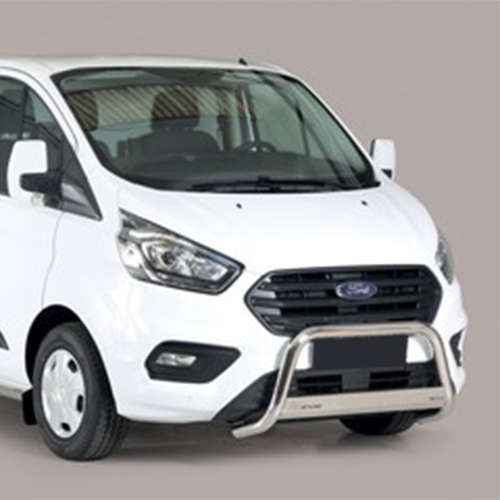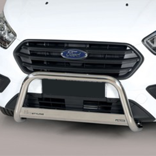 Pushbars are fitted for bumper protection but mainly to give the Ford Transit Custom a rougher look. We offer a diverse range of pushbars at Orion Automotive that we customize for your commercial van. Note: Does your Ford Transit Custom have parking sensors on the front? Let us know, you will then receive stickers covering the inner sensors. Due to the perfect fit and correct mounting brackets, all our pushbars are approved according to European regulations.