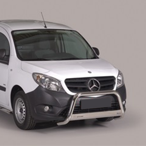 Pushbars are fitted for bumper protection but mainly to give the Mercedes eCitan a rougher look. We offer a diverse range of pushbars at Orion Automotive that we customize for your commercial van. Note: Does your Mercedes eCitan have parking sensors on the front? Let us know, you will then receive stickers covering the inner sensors. Due to the perfect fit and correct mounting brackets, all our pushbars are approved according to European regulations.