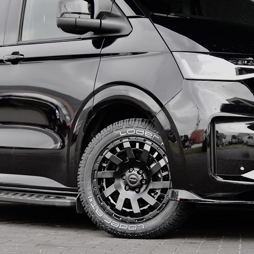 Elevate the appearance of your Volkswagen T7 Transporter with a set of high-quality wheels. This wheel set includes four reinforced rims, each paired with a tyre and pressure sensors.