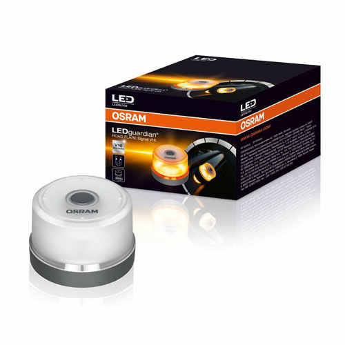 De OSRAM LEDguardian ROAD FLARE Signal V16 is een LED-waarschuwingslicht goedgekeurd volgens de V16-regelgeving. De geel-oranje waarschuwingslichtfunctie van de OSRAM LEDguardian ROAD FLARE Signal V16 draait 360 graden en is van grote afstand zichtbaar. In geval van nood kan het cruciale informatie geven over een gevaarlijke situatie in het verkeer. In tegenstelling tot de waarschuwingsdriehoek trekt het de aandacht van andere weggebruikers naar een ongebruikelijke verkeerssituatie door actief te knipperen, in plaats van enkel te reflecteren zoals een waarschuwingsdriehoek doet.