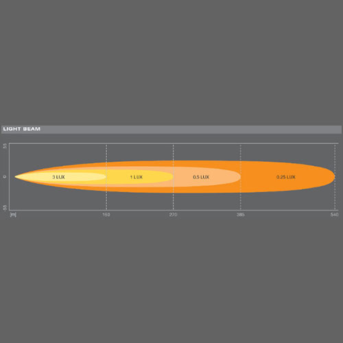 • Lightbar VX500-SP schijnt tot ~415m, heeft 2800 hete lumen, een nominaal ingangsvermogen van 63W, 12/24V, kabellengte van 45 cm en een gewicht van 1435g.
