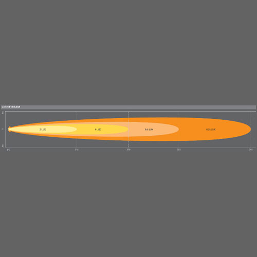 • Lightbar SX500-SP schijnt tot ~370m, heeft 3900 hete lumen, een nominaal ingangsvermogen van 46W, 12/24V, een stralingshoek 8°, kabellengte van 45cm en een gewicht van 1200g.
