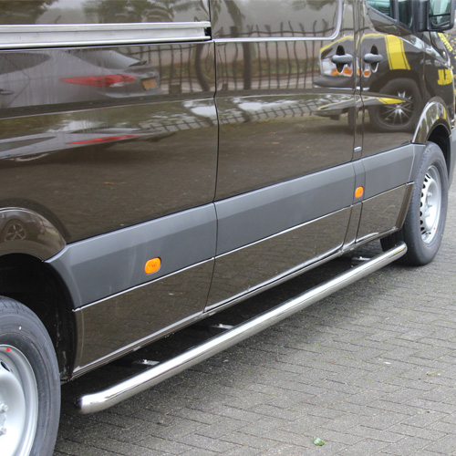 Onze RVS sidebars zijn in diverse modellen en afwerkingen leverbaar. Ze hebben echter allemaal één punt gemeen en dat is de topkwaliteit. Al onze sidebars zijn namelijk voorzien van het Duitse TÜV/ABE kwaliteitskeurmerk. De sidebars hebben een wanddikte van 2mm waardoor ze 72,27% sterker zijn dan de gemiddelde sidebar op de markt. Kies je dus voor een gepolijste of matte sidebar, je Mercedes Sprinter zal altijd optimaal beschermd zijn.