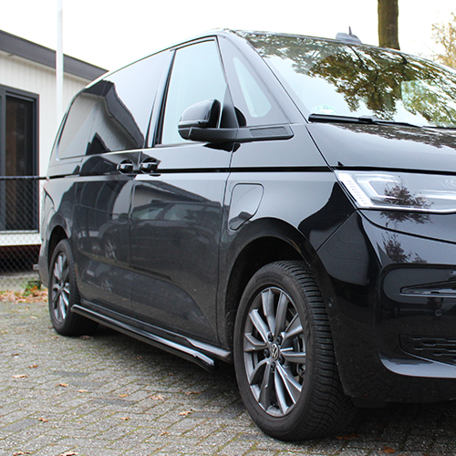 Zwarte sidebars voor de Volkswagen Multivan T7 beschermen de bedrijfswagen. De zwart gecoate RVS sidebars zorgen ervoor dat de zijkant van de bestelwagen schadevrij blijft bij een lichte aanrijding. Zo behoudt de bedrijfswagen een professionele uitstraling. Naast de beschermende functie voegen ze extra body toe aan de Volkswagen Multivan T7. Wil je de beste kwaliteit zwarte sidebars, dan ben je bij Orion Automotive aan het juiste adres.